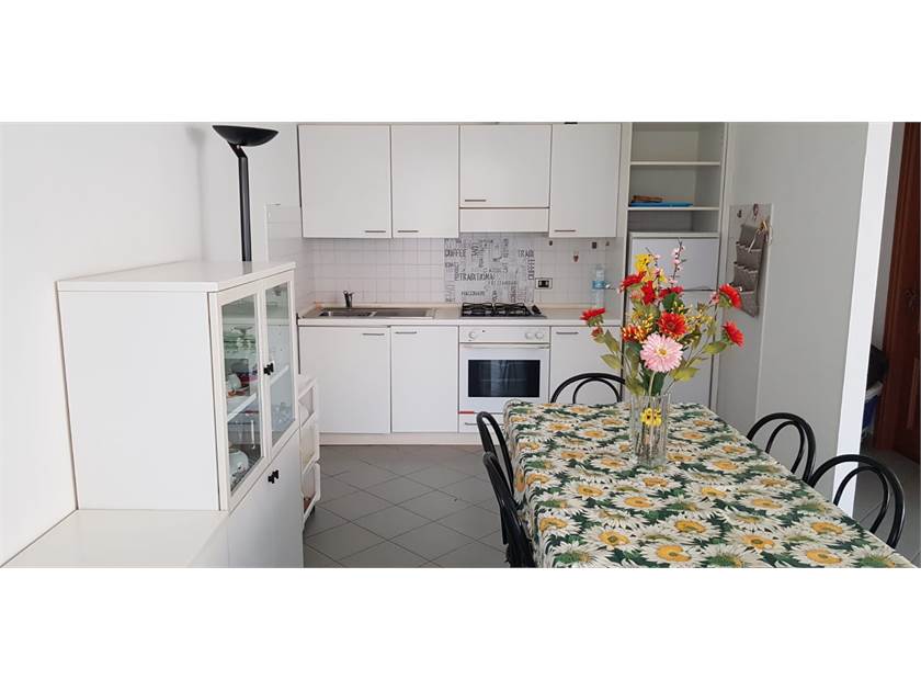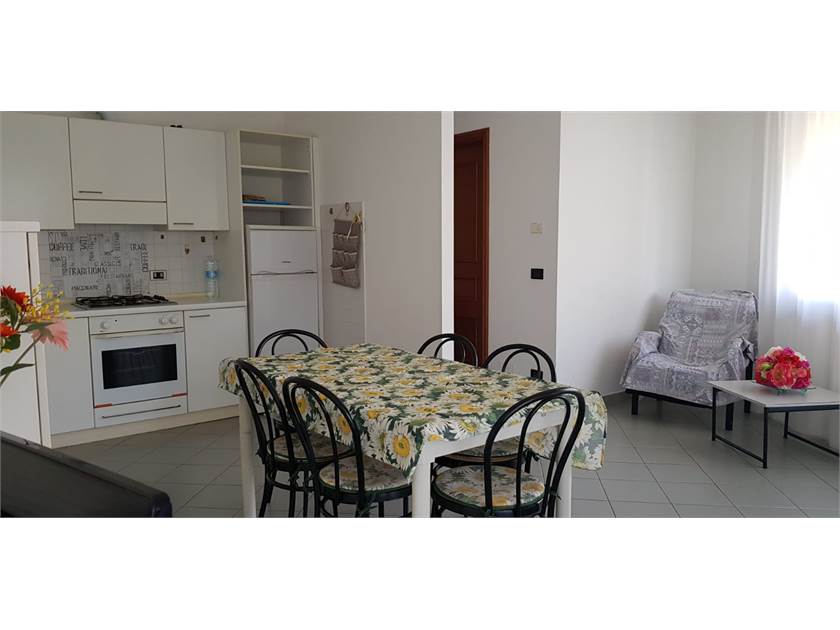 A due passi dal mare, in complesso signorile e ben rifinito, grazioso trilocale con terrazzo vista mare. Ingresso, zona cucina con un ampio soggiorno che ospita il divano letto, camera matrimoniale, cameretta doppia, doppi servizi.