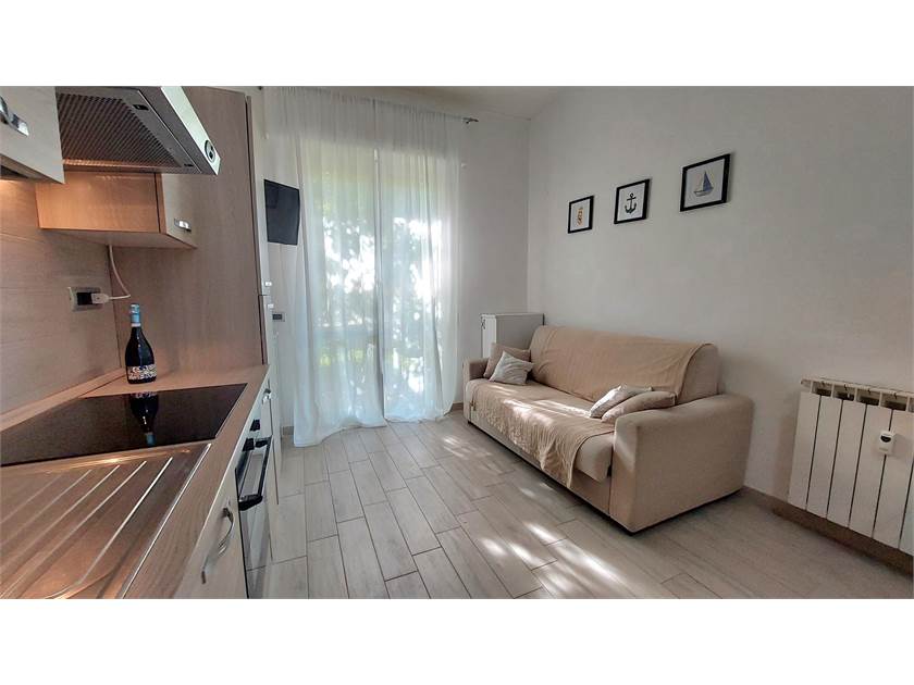 In residenza con piscina e tanto spazio verde, si propone grazioso bilocale dall’ingresso indipendente e pronto da abitare.