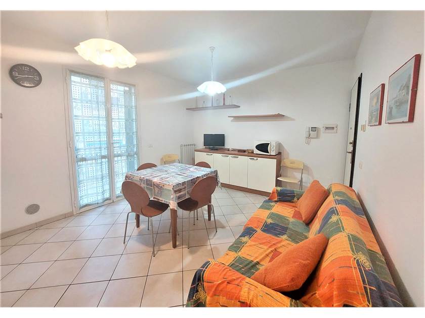 Situato in una recente costruzione, grazioso alloggio al terzo piano con ascensore e senza barriere architettoniche. L’immobile é composto da: camera matrimoniale, cameretta con due lettini, soggiorno con cucina a vista dotata di lavastoviglie, bagno con doccia e balcone.
