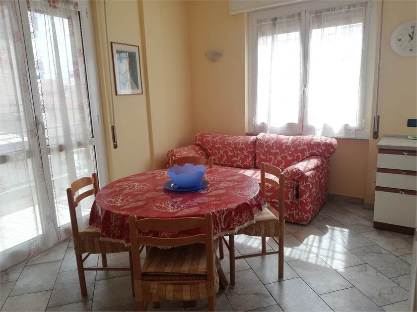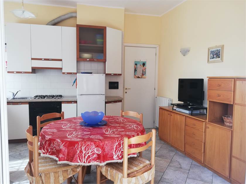 Grazioso appartamento composto da: ingresso, camera matrimoniale, camera tripla, soggiorno con angolo cottura, bagno con doccia e balcone . Ottima esposizione sud/est. Posizione comoda per l’accesso alle spiagge ed a tutte le attività commerciali.