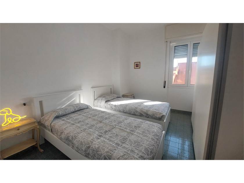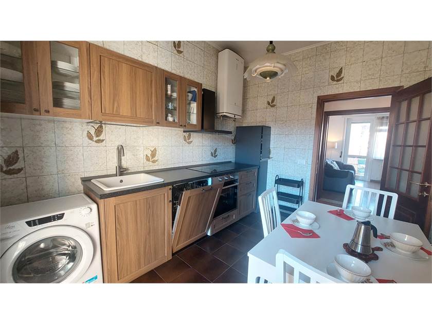 Ingresso, cucina abitabile con lavastoviglie, salotto con divano letto e tv, camera matrimoniale con tv, camera doppia, bagno finestrato con ampio box doccia e due balconi godibili.